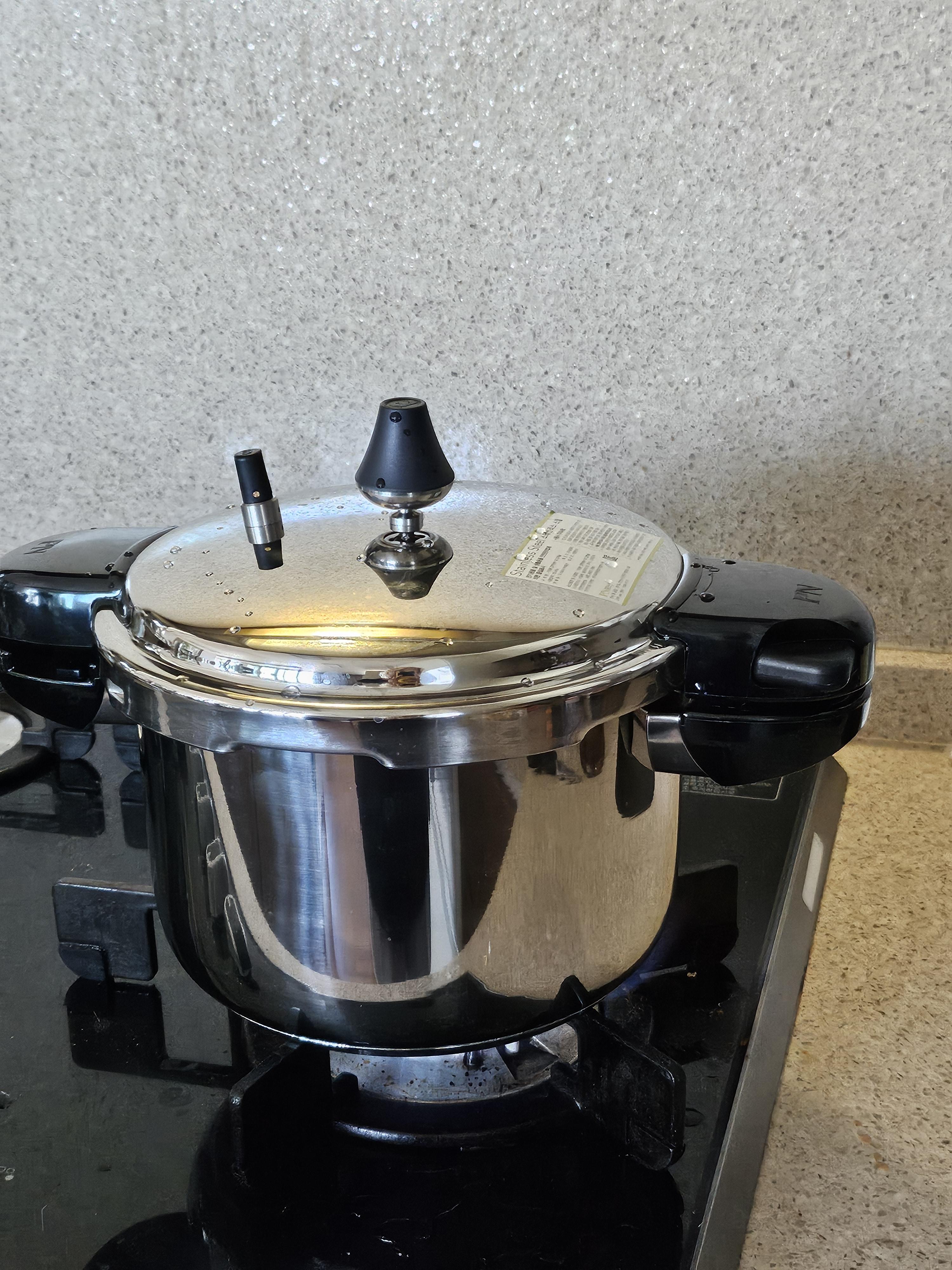 4. 다 끓인 압력솥에 압력을 뺀 후 내용물을 확인합니다.