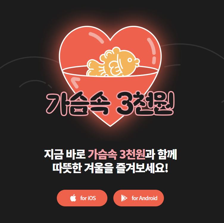 1. 먼저, 플레이스토어 혹은 애플스토어에서 [가슴속 3000원] 어플을 다운받으세요.