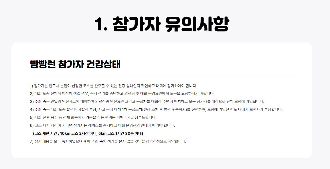 참가자 유의사항을 살펴보시면, 건강 상태가 안 좋으면 참가가 불가하니 대회날까지 컨디션 조절을 잘하셔야 합니다.