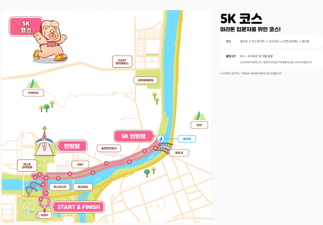 코스 10K 와 5K 둘 중 선택하실 수 있습니다.