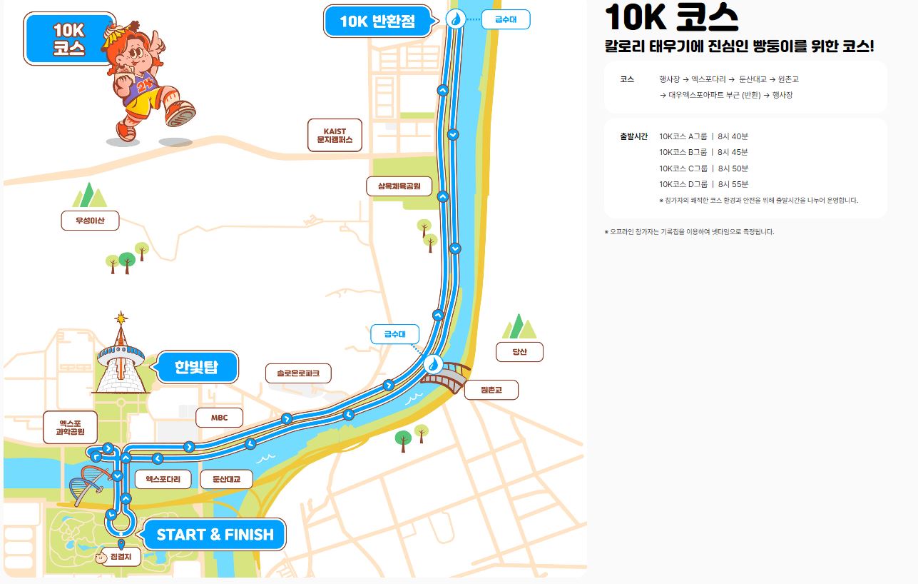 코스는 10K 와 5K 둘 중 선택하실 수 있습니다.