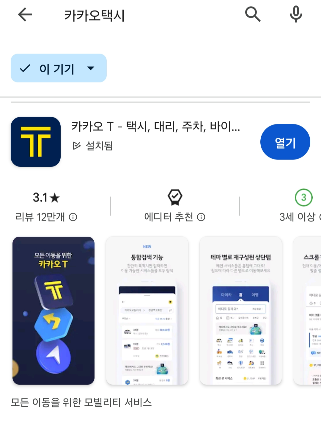 스마트폰 앱스토어에서 카카오 택시를 검색해 다운로드해 주세요. 설치가 완료되면 앱을 엽니다. 카카오 T는 로그인이 필요한데요, 카카오 계정을 사용하고 계시다면 빠르게 처리할 수 있으며, 전화번호를 이용해서도 가입이 가능합니다.